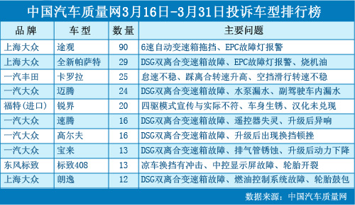 中國(guó)汽車(chē)質(zhì)量網(wǎng)2012年3月下半月投訴排行