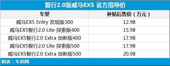 智行2.0版威馬EX5上市 補(bǔ)貼后售12.98萬(wàn)元起