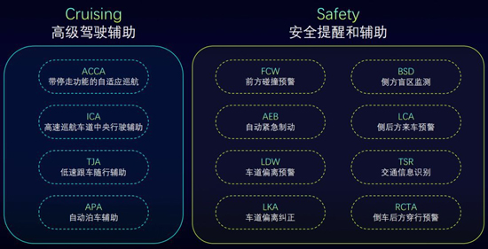 其中,第四代ACCA帶停走功能的自適應(yīng)巡航,是目前自適應(yīng)巡航系統(tǒng)的最高級(jí)別,可以根據(jù)車流情況,自動(dòng)調(diào)整車速并與前車保持距離,實(shí)現(xiàn)跟停和跟走。ICA高速巡航車道中央行駛輔助和TJA低速跟車隨行輔助,則分別可以在高速和城市路況下,無(wú)需駕駛員控制方向、油門(mén)和剎車,自動(dòng)保證車輛在車道中間行駛,幫助駕駛員輕松應(yīng)對(duì)高速巡航駕駛以及城市擁堵場(chǎng)景,改善駕駛疲勞。